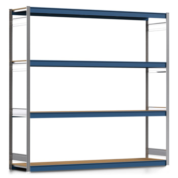 Weitspannregal EMIL, Breite 262 cm, Tiefe 62 cm, Höhe 250 cm, 4 Holzfachböden