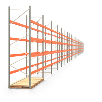 Palettenregal ARTUS, Breite 10695 cm, Höhe 400 cm, 4 Träger-Ebenen, für 580 Euro-Paletten