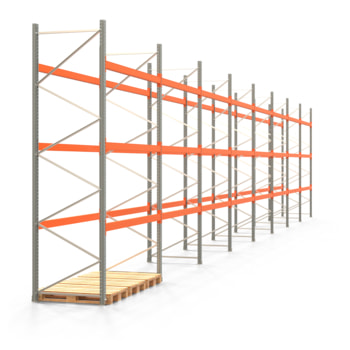 Palettenregal ARTUS, Breite 2236 cm, Höhe 400 cm, 3 Träger-Ebenen, für 96 Euro-Paletten